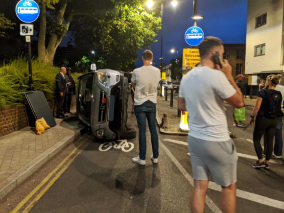 If a vehicle flips onto the pavement then what will happen?